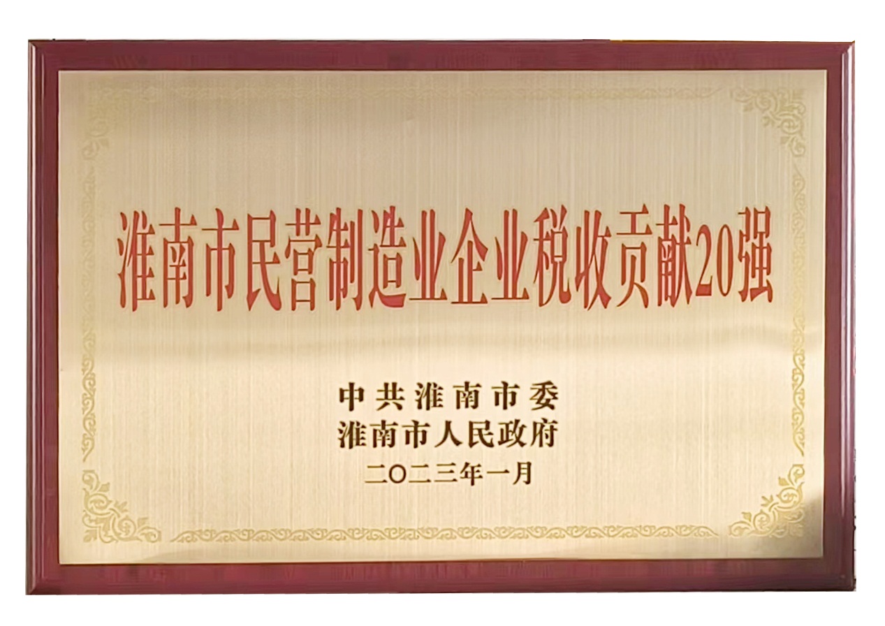 2023年1月30日上午,淮南市“一改兩為”推進會暨“雙招雙引”推動高質(zhì)量發(fā)展大會在市政務中心召開。會上對全市“淮南市民營制造業(yè)企業(yè)稅收貢獻20強”等企業(yè)和先進集體、先進個人進行了表彰。安徽德邦公司以年貢獻稅收1.51億元名列20強之首,市委書記任澤鋒親自為企業(yè)頒發(fā)獎牌并表示祝賀。